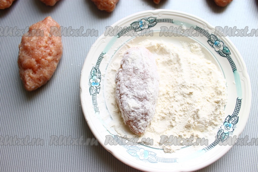Затем фарш разделить на одинаковые части (рабочую поверхность и руки смачивать водой, чтобы фарш не лип к рукам).