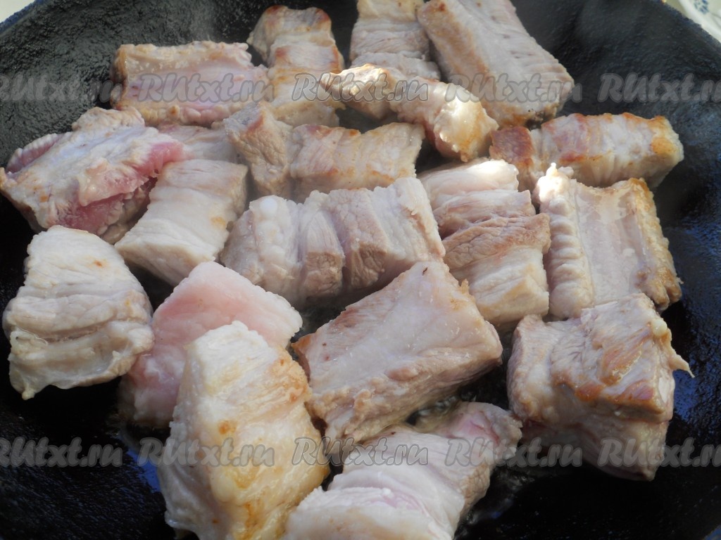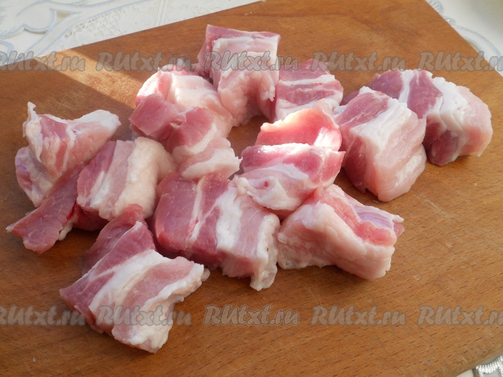 Свинину порезать средними кусочками.