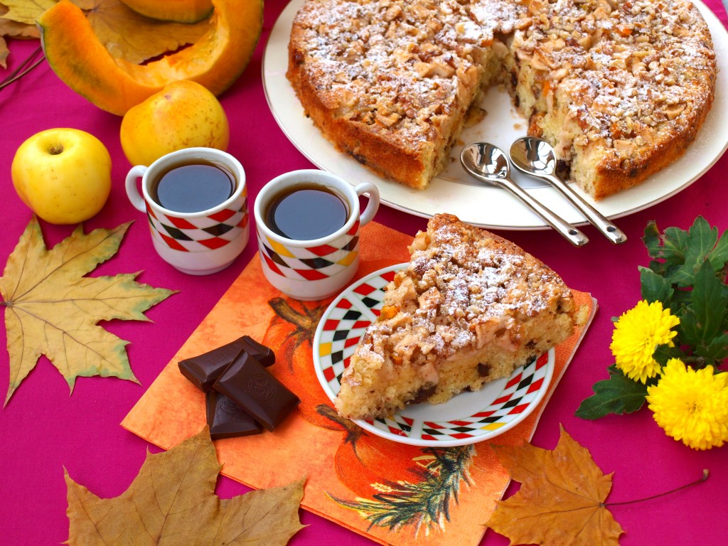 Самым осенним овощем считается тыква. Блюда с её использованием радуют нас каждый день. Не меньше радуют яблоки и свежий урожай грецких орехов. Предлагаю вам очень вкусный тыквенно-яблочный пирог с грецкими орехами с добавлением кусочков шоколада. Это мега вкусно!