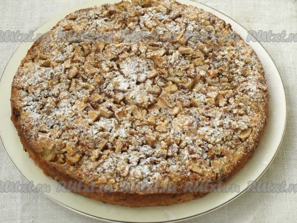 Духовку разогреть до 180 градусов и печь пирог 40 минут. Затем вынуть из духовки, остудить, извлечь из формы и посыпать сахарной пудрой.