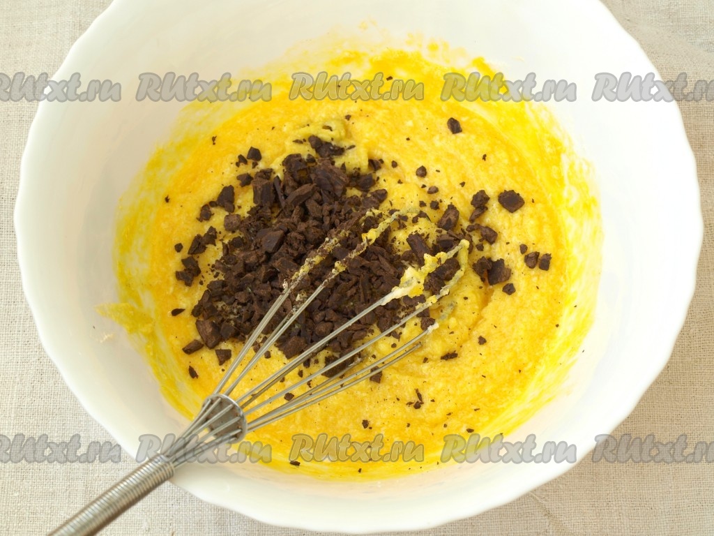 Шоколад поломать на кусочки и добавить в тесто.