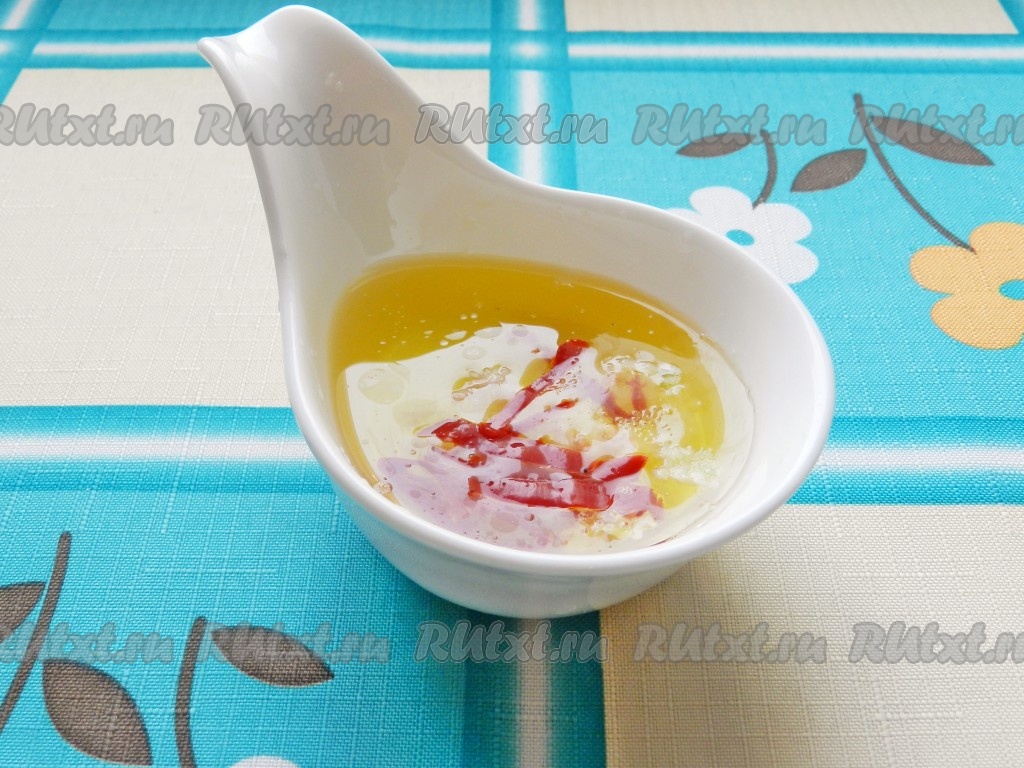 Соединить все ингредиенты для заправки, перемешать и оставить на 15 минут.