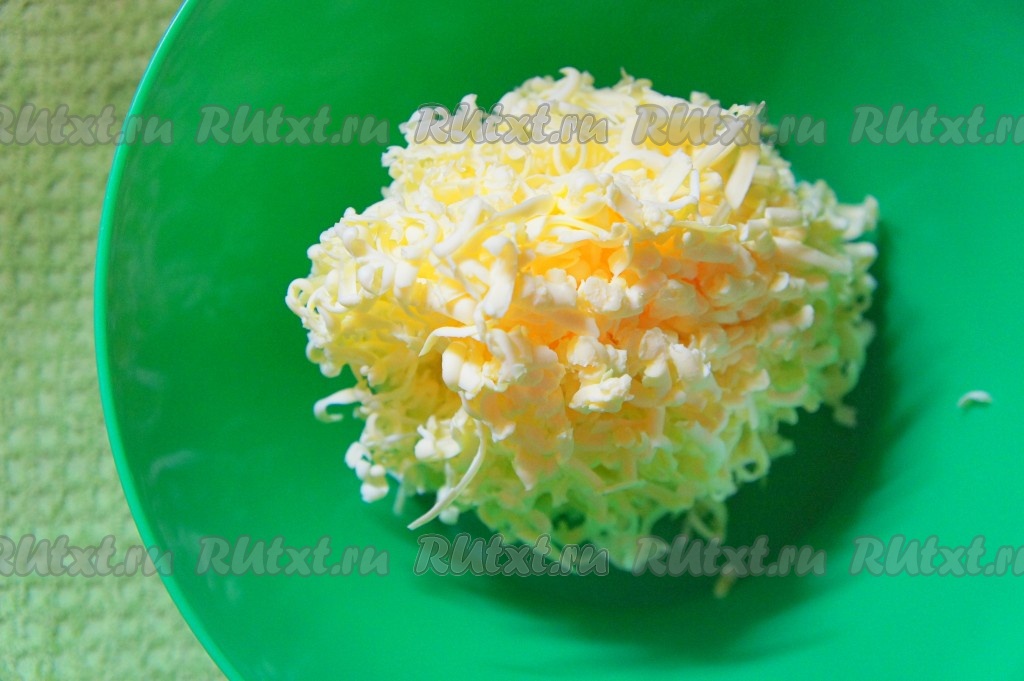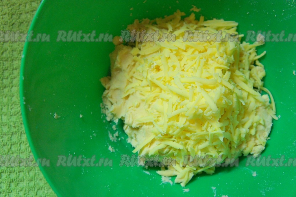 Добавить натёртый на крупной тёрке сыр, вмешать в тесто.