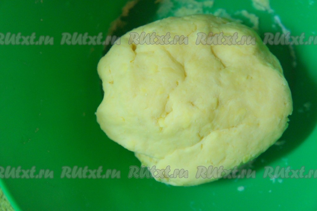 Частями начать добавлять оставшуюся муку, замешивая эластичное, мягкое тесто. Как только тесто перестанет липнуть к рукам, больше муку добавлять не нужно. Если добавить слишком много муки, тогда печенье будет жёстким.