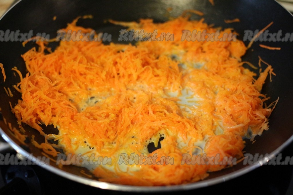 4. Морковь обжарить на растительном масле до полуготовности, добавить сливки и уварить.