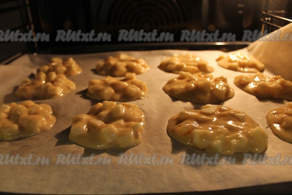6. На противень, застеленный пергаментной бумагой, выкладывать тесто чайной ложкой. Выпекать 10-12 минут в разогретой духовке при температуре 180 градусов.