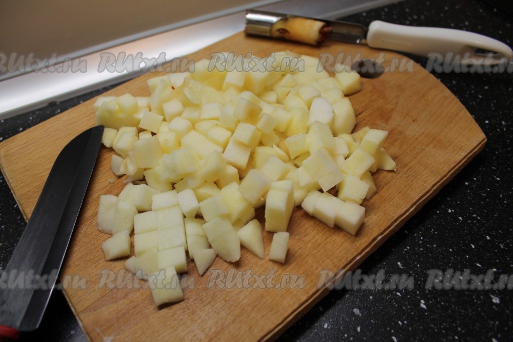 4. Очистить крупное яблоко, удалить из него сердцевину и нарезать кубиком.