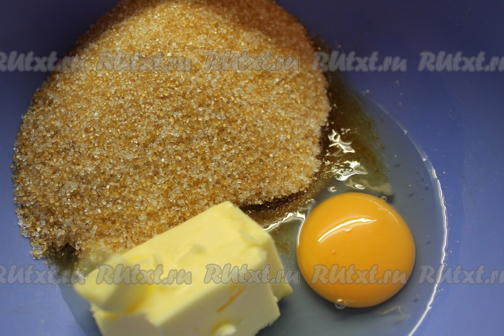 1. Сахар, яйцо и масло взбить до воздушной массы.