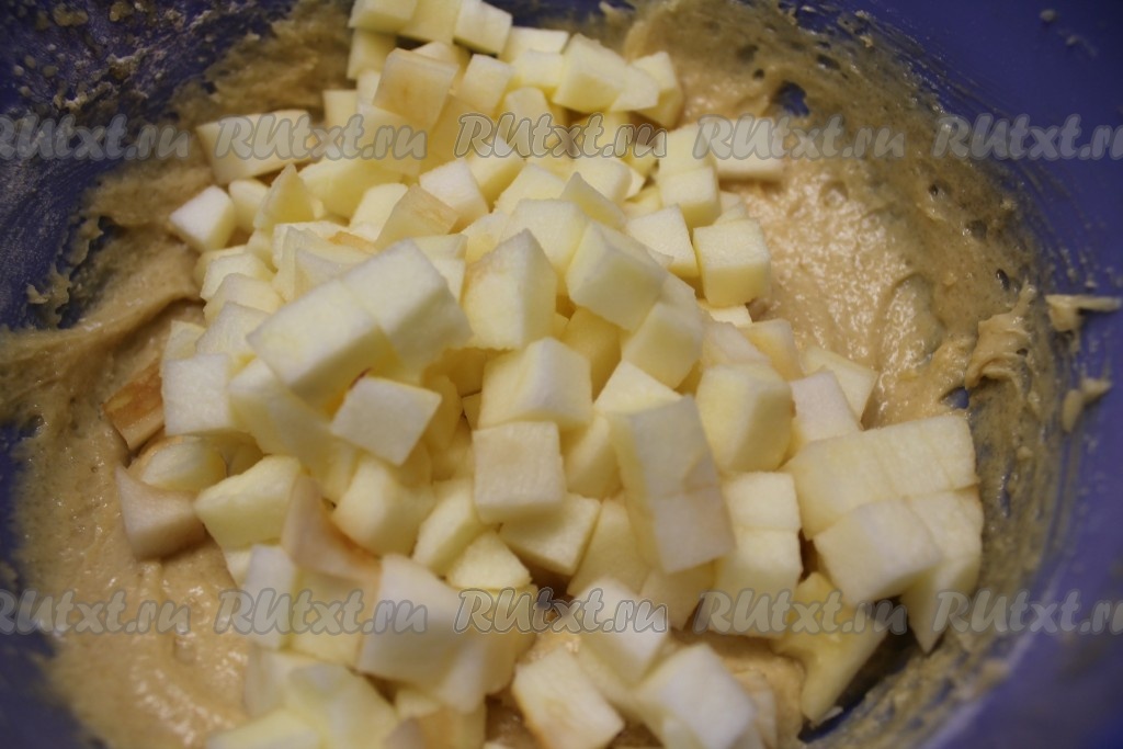 5. Добавить яблоко в тесто и перемешать.