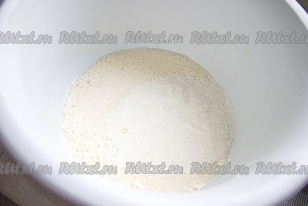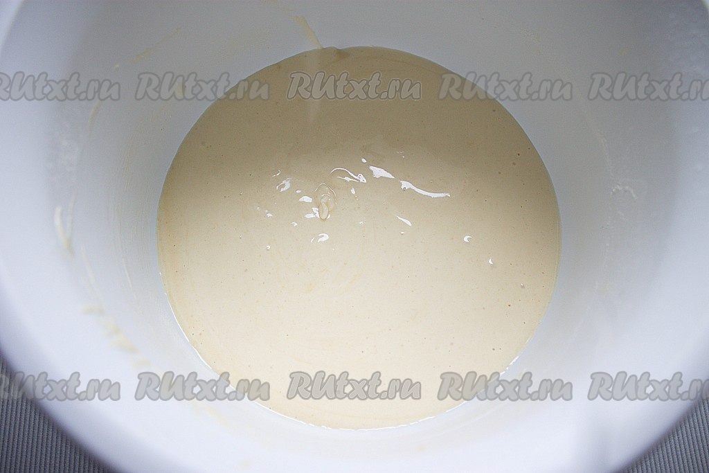 Постепенно всыпать просеянную муку с разрыхлителем, все перемешать до однородной массы без комочков.