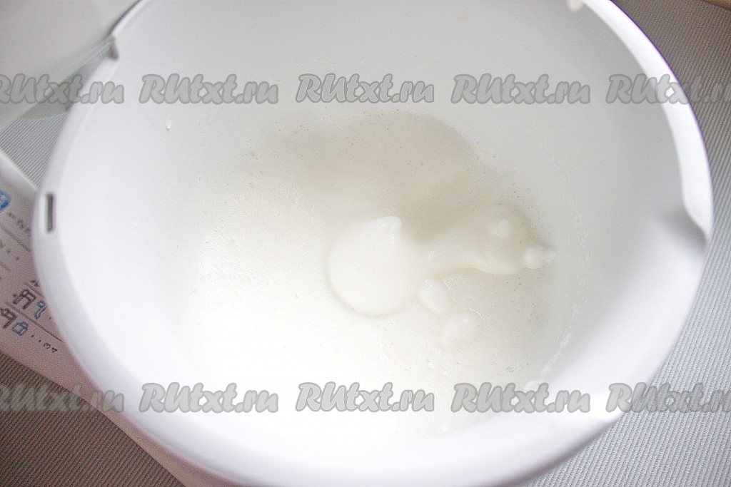 Яйца аккуратно разделить на белки и желтки. Белки взбить до пышной пены.