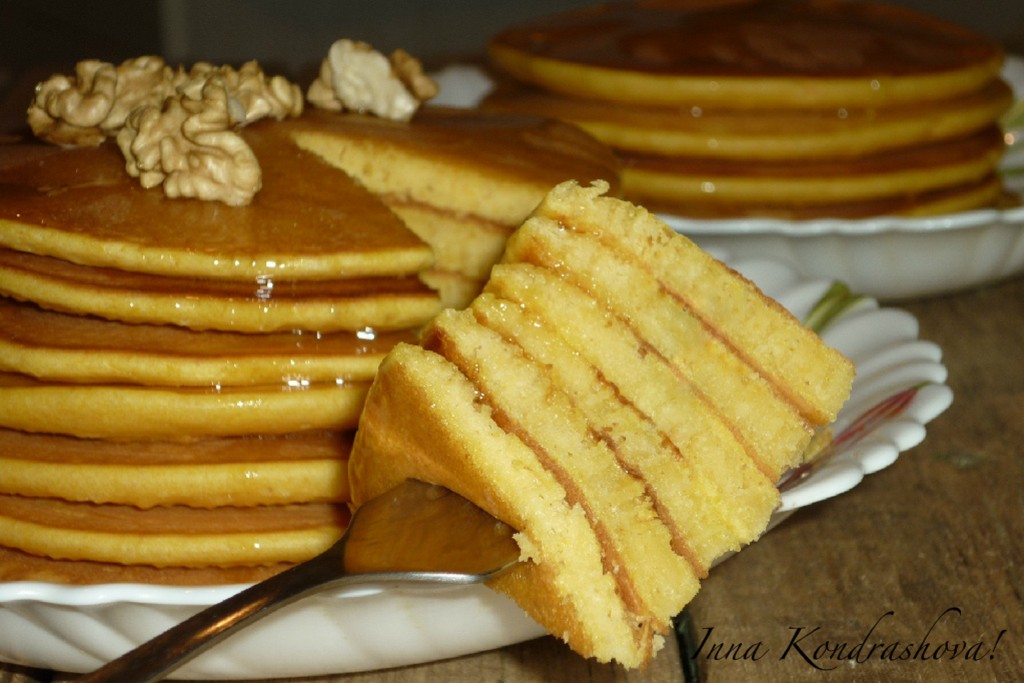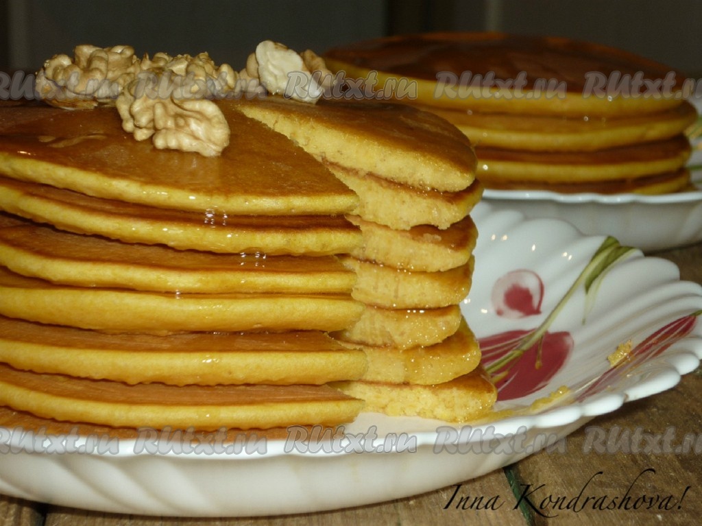 Пышные, аппетитные тыквенные панкейки сложить в аккуратную стопочку.