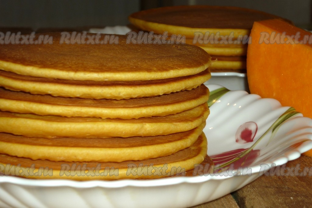 Панкейки - это  знаменитые американские блинчики. Рецептов их приготовления немало, выпекаются они на сухой (без масла) разогретой сковороде. В этот раз предлагаю на завтрак или в качестве сытного перекуса приготовить панкейки из теста, замешанного из тыквы на молоке. Панкейки получаются очень нежными, аппетитными, вкусными. Есть их одно удовольствие, советую приготовить!