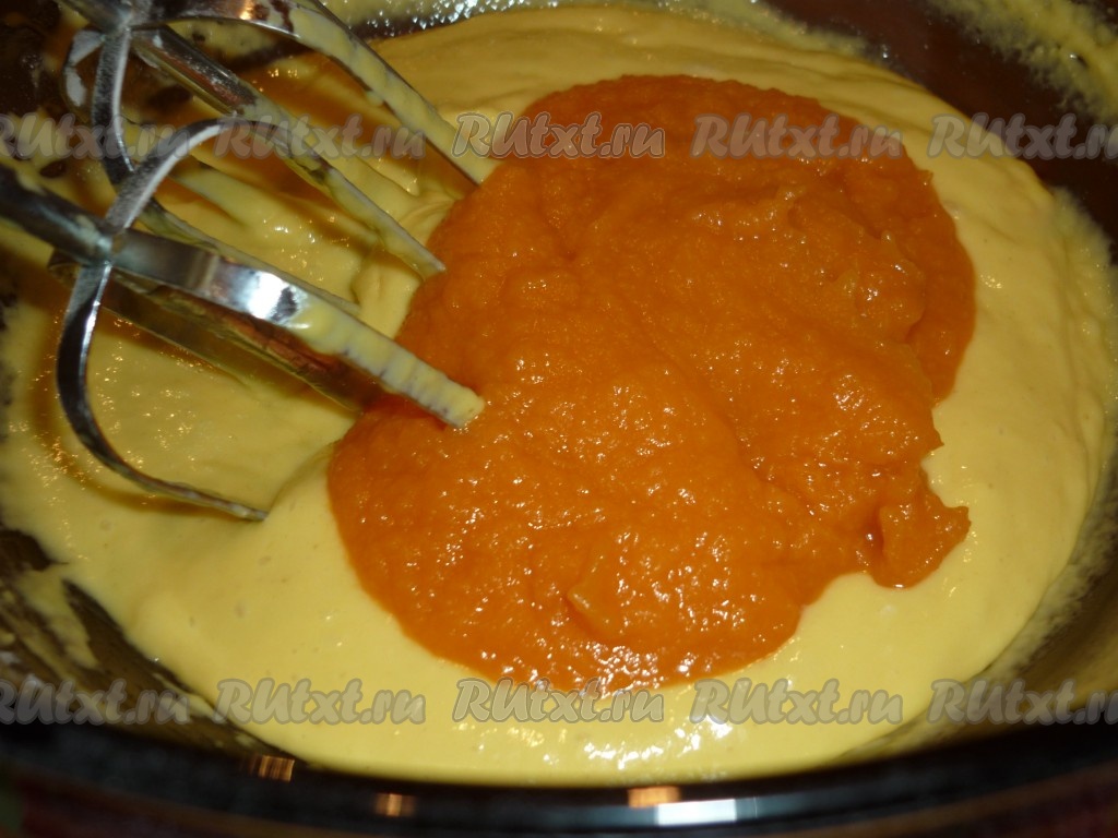 Достать запечённую тыкву, дать ей немного остыть, а затем измельчить погружным блендером до однородности. Для приготовления панкейков понадобится 200 грамм тыквенного пюре.