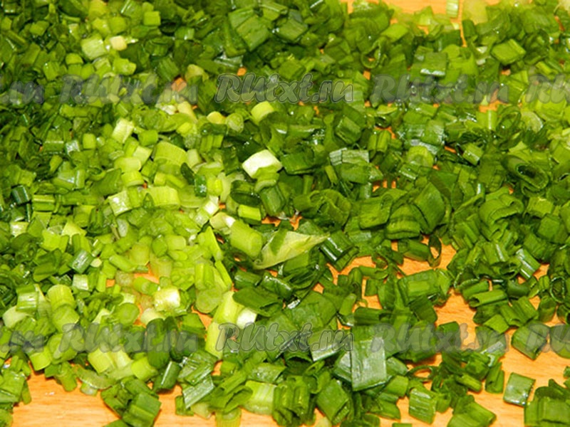 Подготовила начинку. Растопила 2 столовых ложки сливочного масла. Дала остыть. Мелко порубила ножом зелёный лук.