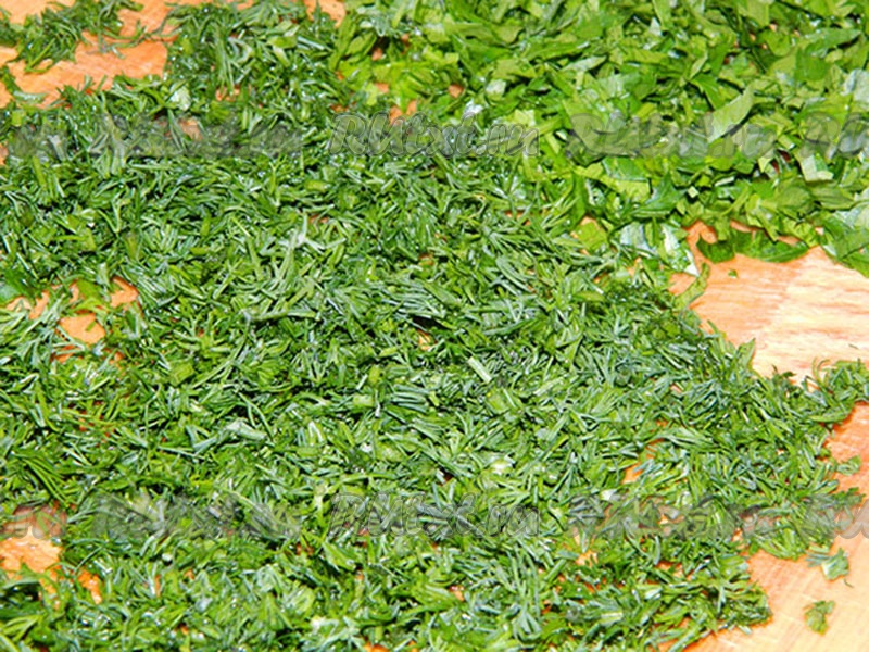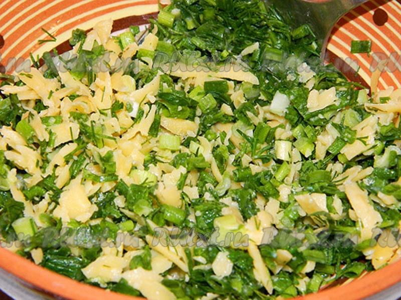 Сыр натёрла на крупной тёрке. Соединила в отдельной посуде масло, зелень, сыр, добавила молотые специи (красный перец, чёрный перец, тмин, кориандр, майоран). Тщательно перемешала.