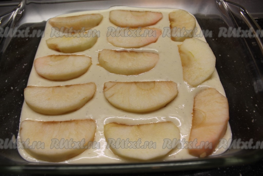 6. На творожную массу выкладываем яблочные дольки.