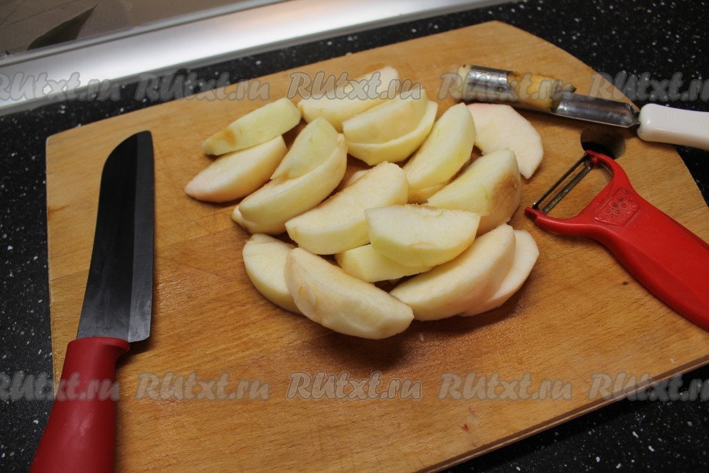 4. Из яблок удаляем сердцевину, очищаем и режем дольками.
