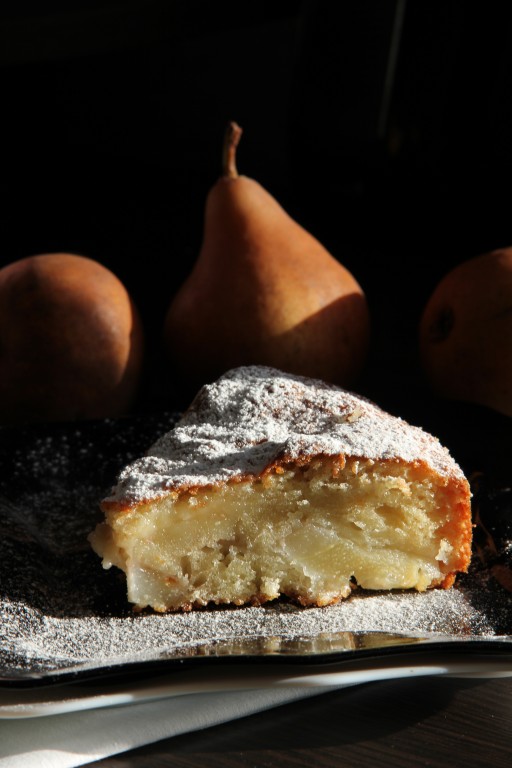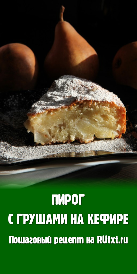 Выпекать 50-55 минут при температуре 180 градусов. Остывший пирог с грушами, приготовленный на кефире, по желанию посыпать сахарной пудрой.