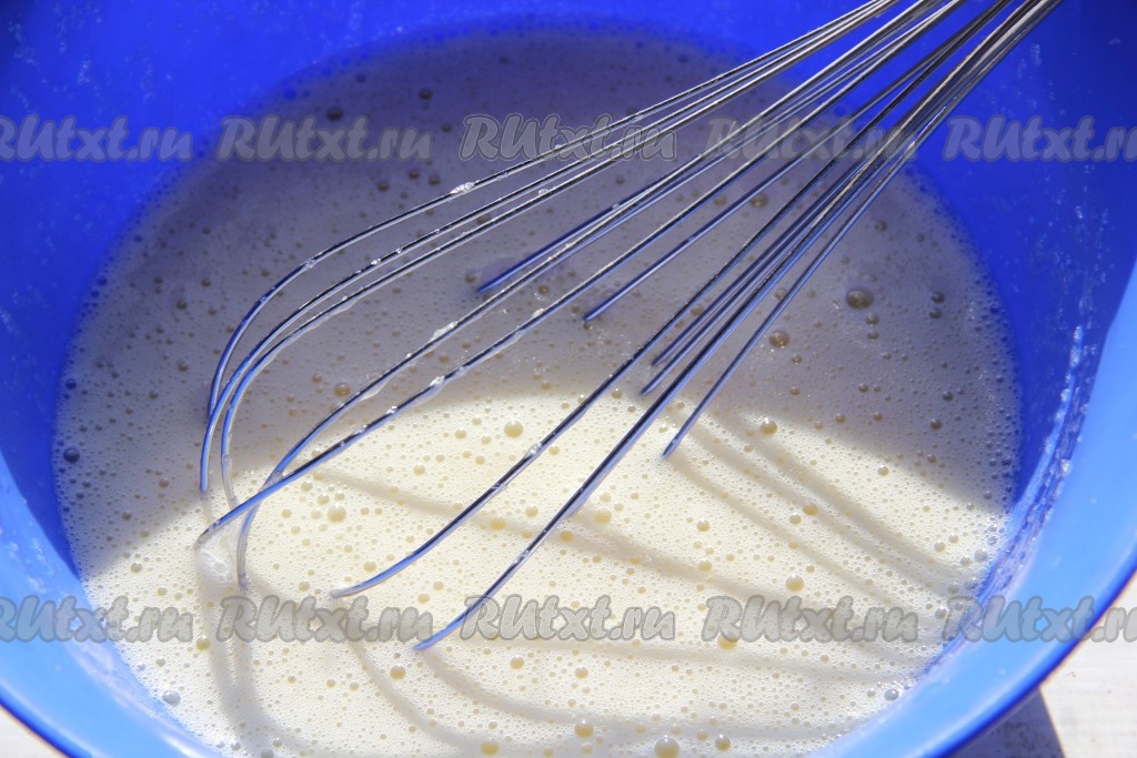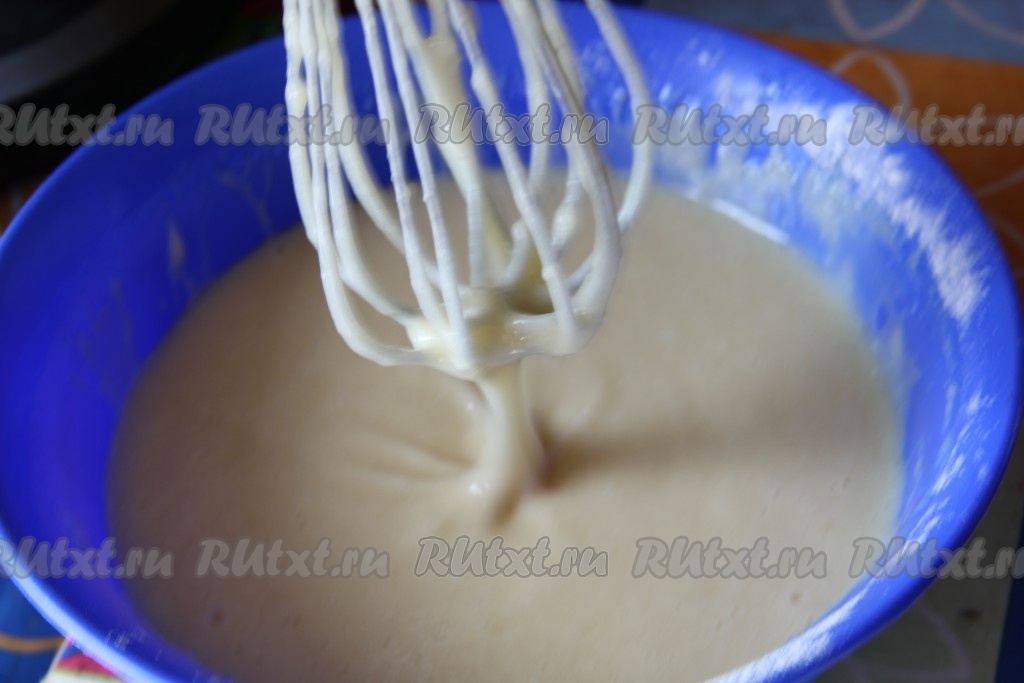 Добавить растительное масло, кефир, муку, ванильный сахар и разрыхлитель.