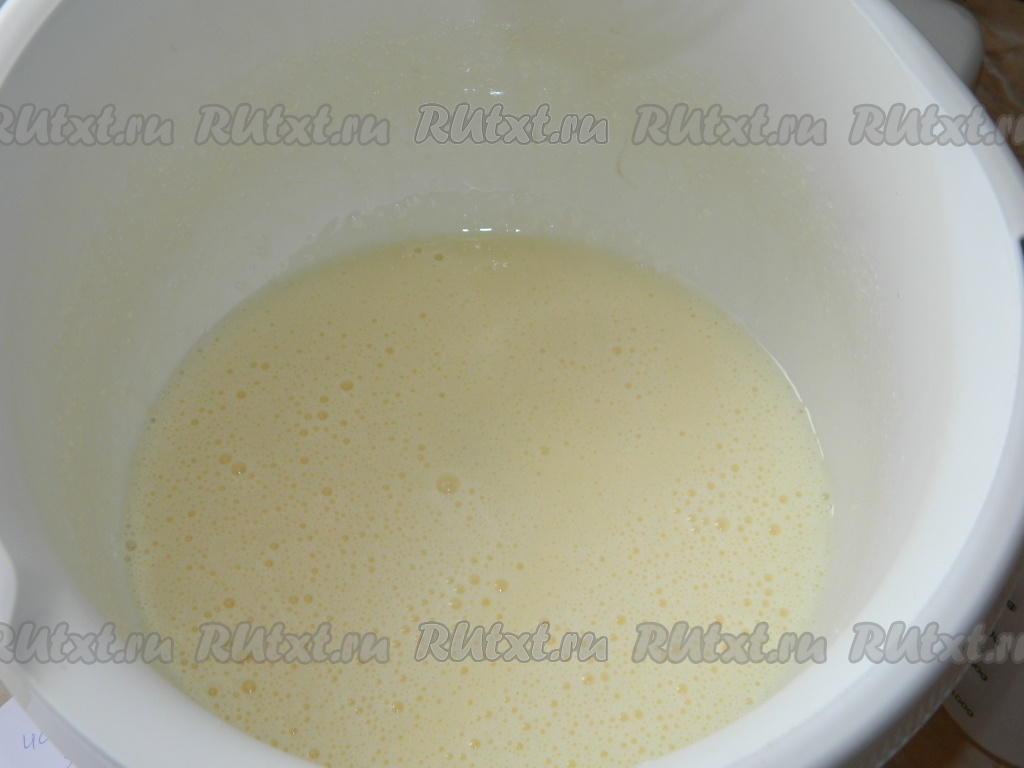 Для приготовления бисквита вместе взбить сахар, яйца и растительное масло.