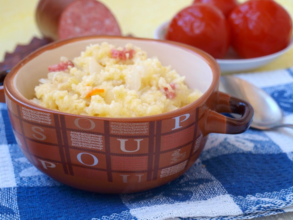 Необыкновенно вкусная пшенная каша получается с добавлением в неё квашеной капусты. Такая каша замечательно подойдёт для завтрака. Приготовить её можно как в постном варианте, так и с добавлением колбасы. Попробуйте!
