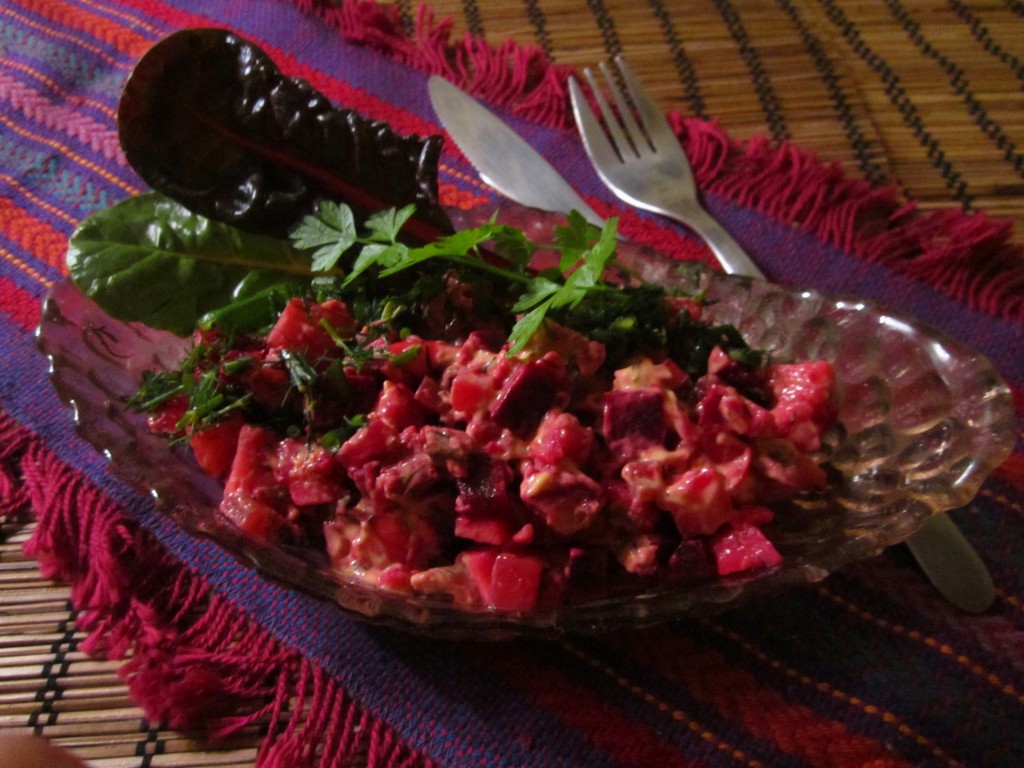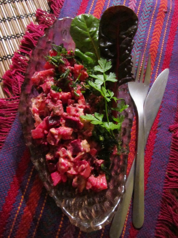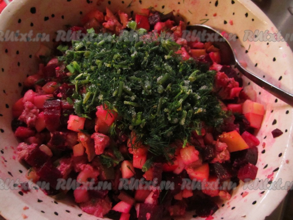 Салат с печенью трески и свёклой