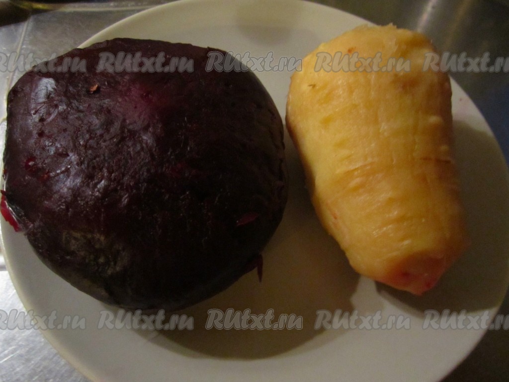 Очистите приготовленные свёклу и пастернак (или сельдерей) от кожицы.