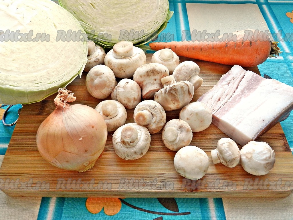 Тушеная капуста - одно из самых популярных блюд, особенно в осенне-зимний период. Капуста, тушеная с шампиньонами - подходящий овощной гарнир к жареному или запеченному мясу, а также может быть самостоятельным блюдом. Такая капуста получается вкусной, сочной, с приятным грибным ароматом.