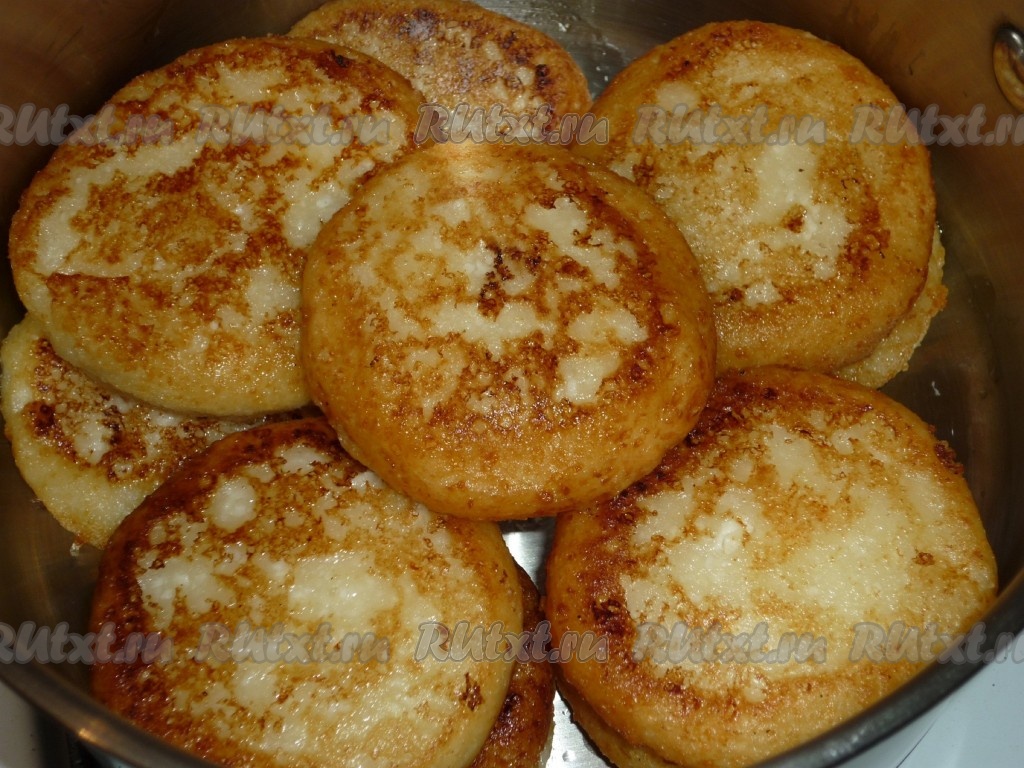 Обжаренные сырники перекладываем в кастрюлю.