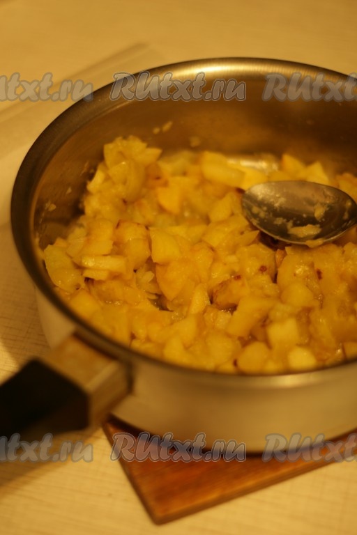 На слабом огне варить яблоки до мягкости (ориентировочно 20-30 минут), периодически перемешивая.