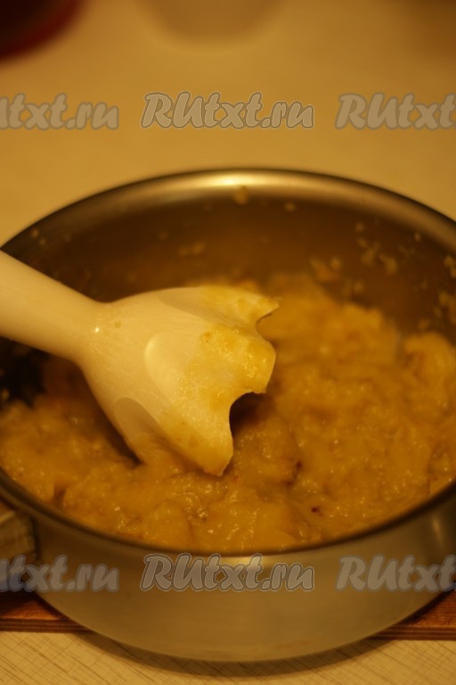 Затем, убрав с огня, дать яблочной смеси немного остыть и измельчить погружным блендером до получения однородного яблочного пюре.