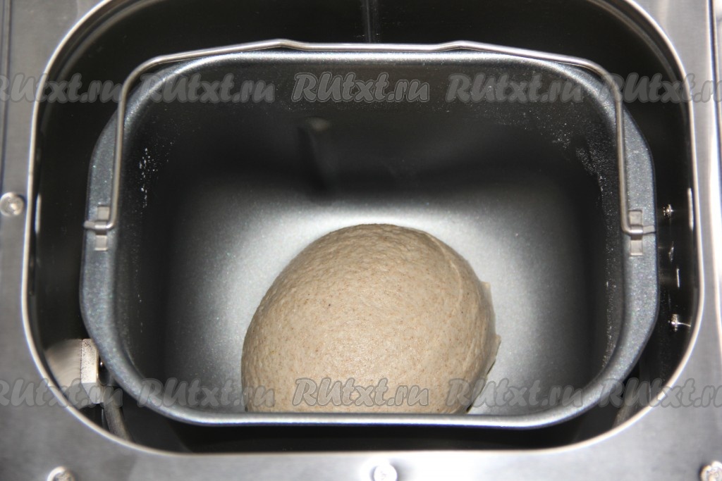 Выставить режим выпечки "Основной" (время выпечки - 3 часа 10 минут), вес - 500 грамм, цвет корочки - "Средняя". Контролировать формирование колобка, если нужно, добавить пшеничной муки.
