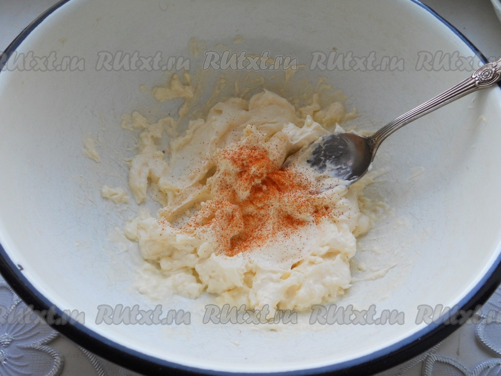 Также добавить измельченный чеснок и взбить все погружным блендером до однородной кремообразной массы. Поперчить.