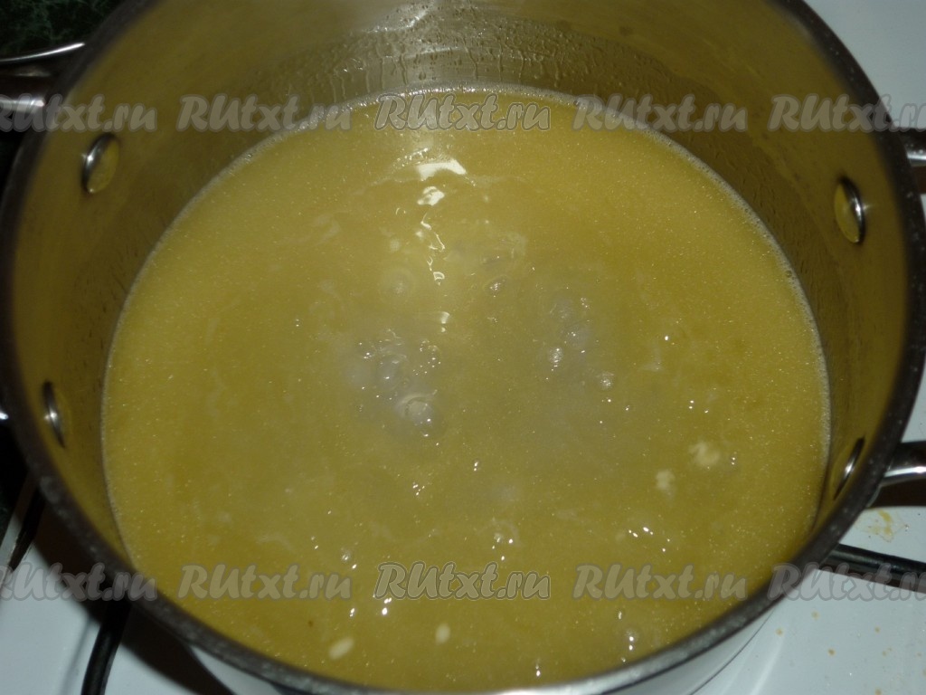 Когда масло растворится, добавляем муку и, непрерывно помешивая, варим 3-4 минуты.