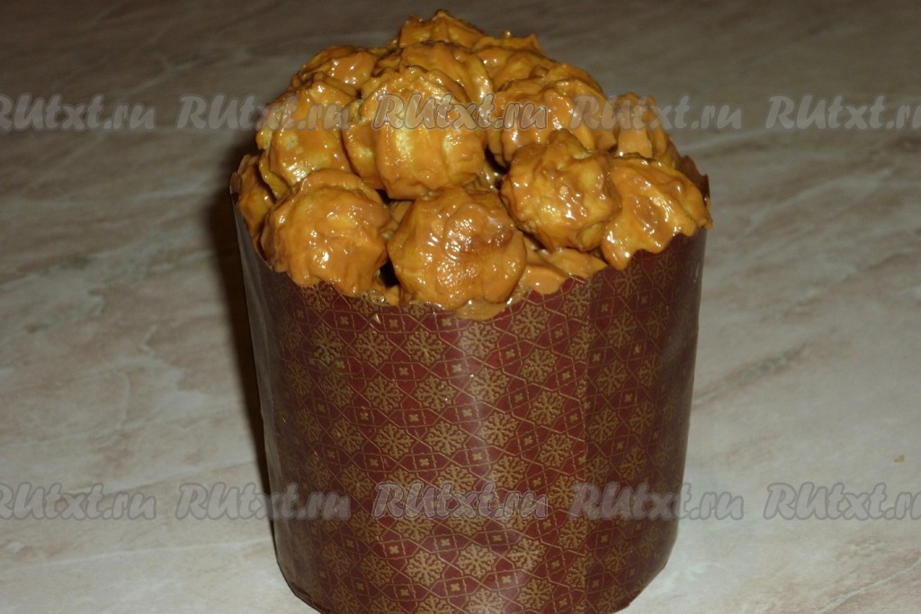Ставим кулич из эклеров минут на 15 в холодильник.