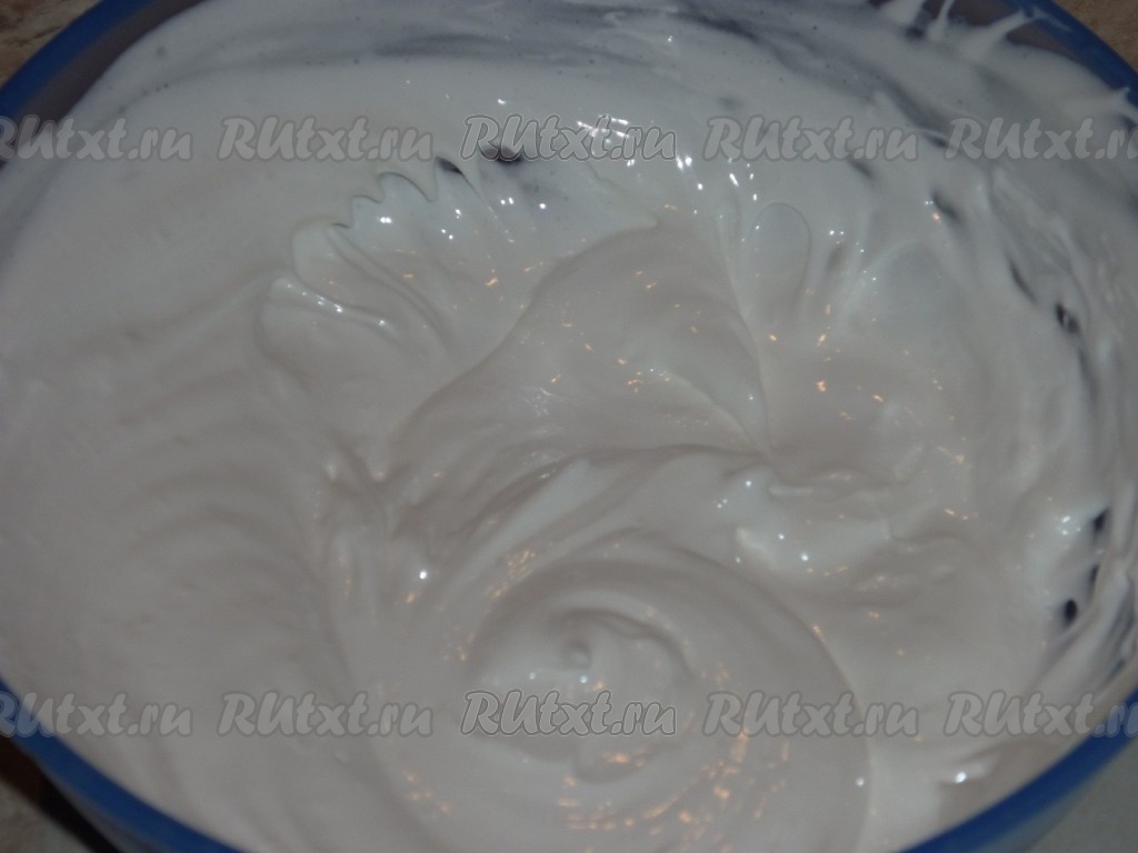 Для приготовления глазури взбиваем яичный белок с сахарной пудрой и солью до стойких пиков.
