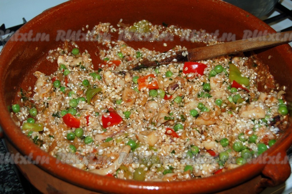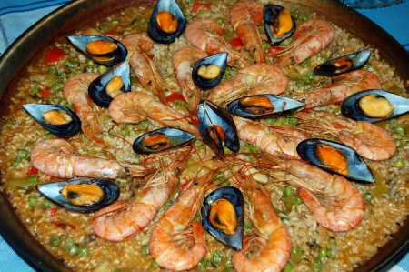 Паэлья - одно из восхитительных блюд испанской кухни. Насчитывается огромное количество её рецептов приготовления. Паэлья может быть с мясом, рыбой, морепродуктами или вегетарианской. Я представляю вам испанский рецепт приготовления в домашних условиях необыкновенно вкусной, ароматной, сочной паэльи с морепродуктами. В состав этого блюда входит рис. Для приготовления паэльи понадобится сковорода с широким дном и толстыми стенками. При выборе подходящей сковороды нужно исходить из следующего принципа: чем тоньше вы сможете выложить слой риса (максимум 2 сантиметра), тем ароматнее и сочнее получится блюдо. Поверьте, это очень вкусно. Всем советую приготовить паэлью!