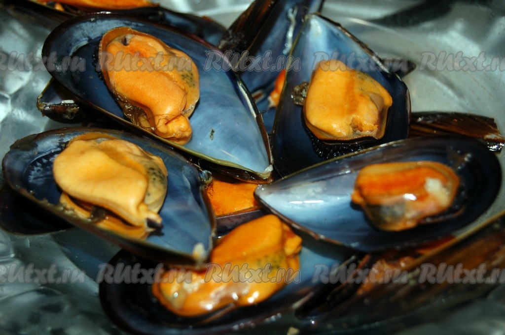 Мидии опустить в кипящую воду, дать воде закипеть, варить их в течение 15 минут на небольшом огне, затем достать и открыть створки.