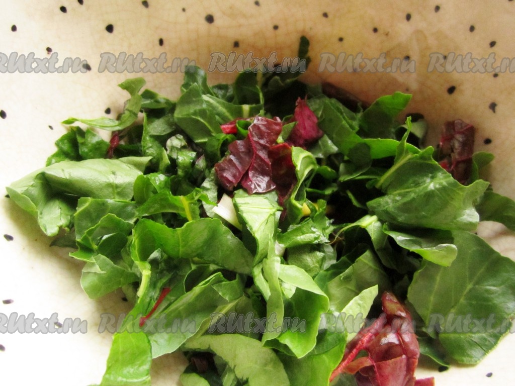 Салатные листья помыть и крупно нарезать или порвать руками.