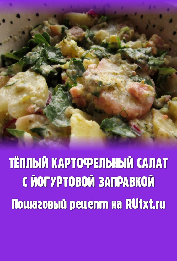Полить тёплый салат заправкой, осторожно перемешать и сразу же подавать на стол. Тёплый салат с йогуртовой заправкой готов!