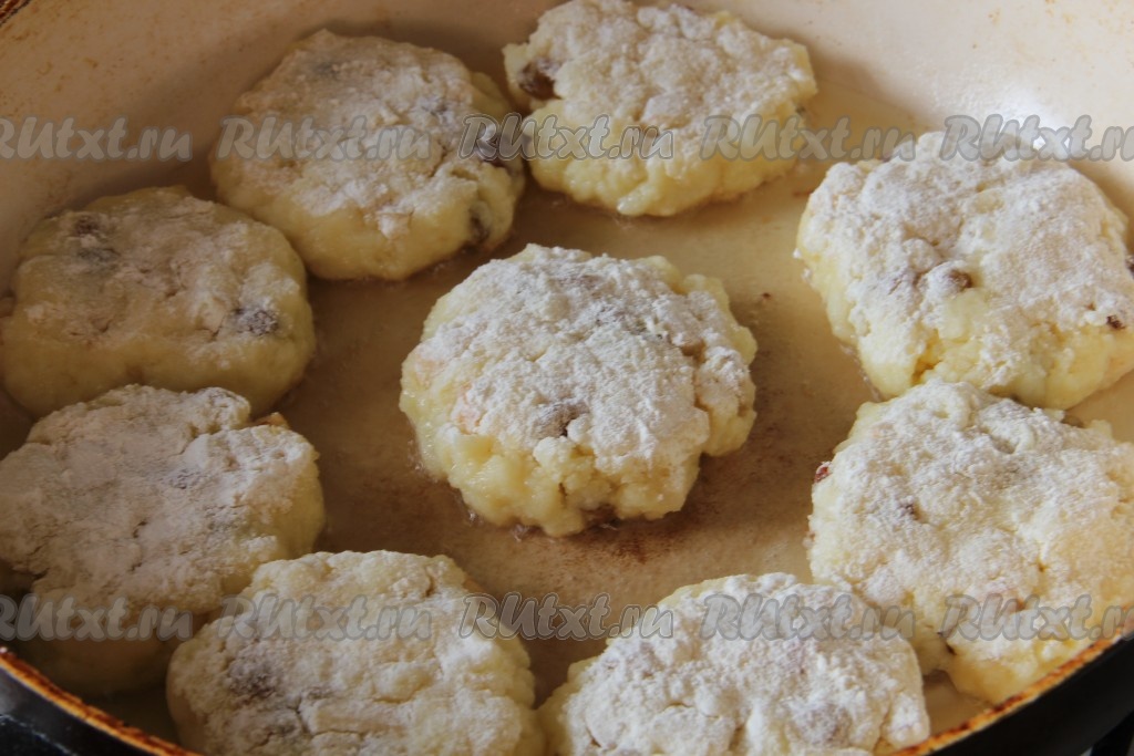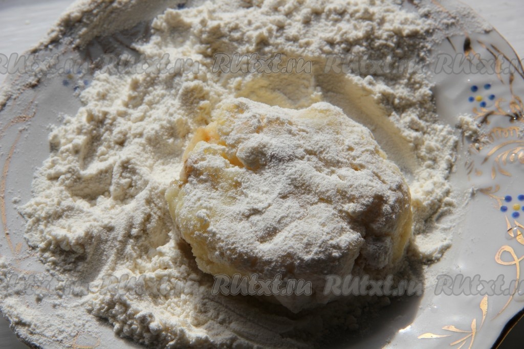 Формируем из готовой массы оладушки, обваливаем их в муке.