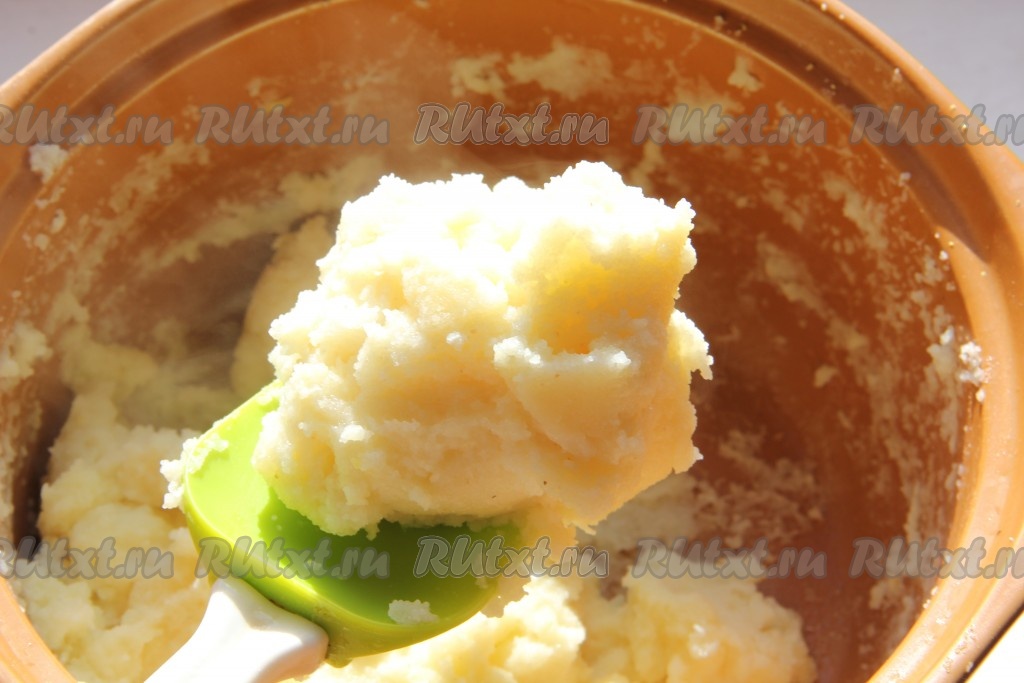 Масса в конце станет очень густой, ее будет тяжело вымешивать ложкой.