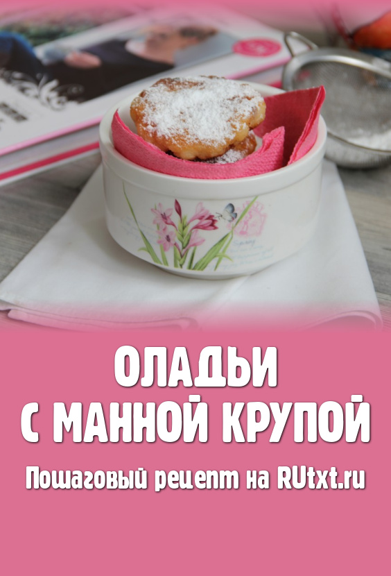 Остывшие необыкновенно вкусные, сочные оладьи, приготовленные с добавлением манной крупы, присыпаем сахарной пудрой и подаём к столу.