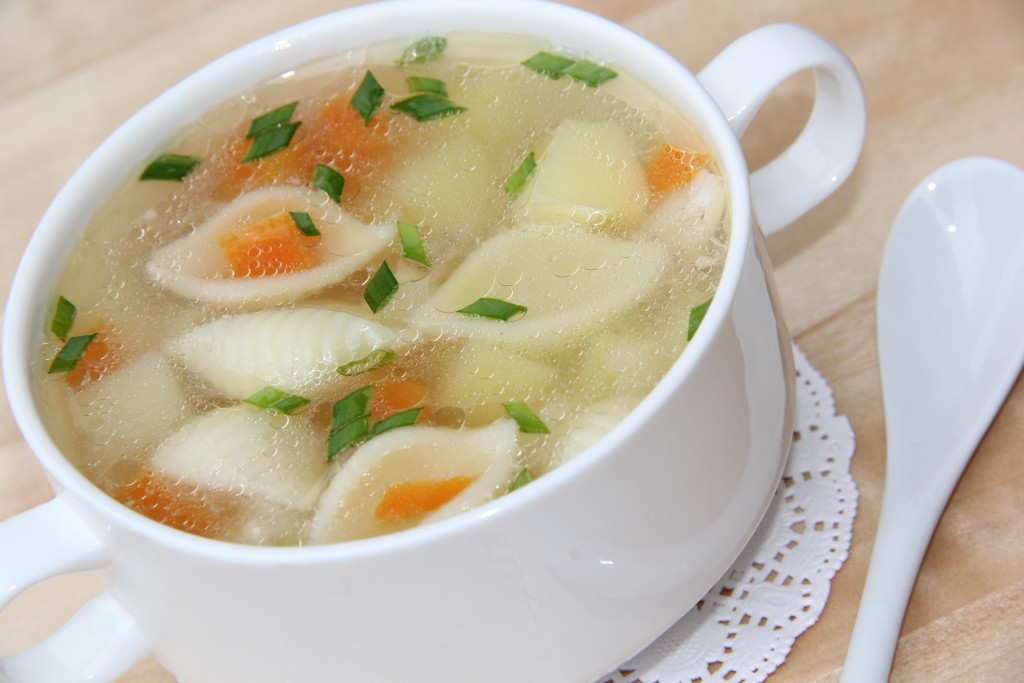 Все дети любят суп с макаронами, мои в особенности. Я часто готовлю суп с курицей и различными макаронными изделиями. Хочу поделиться простым рецептом вкусного куриного супчика с ракушками.