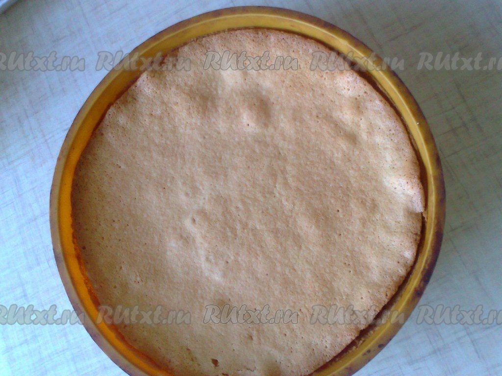 Готовый бисквит должен быть золотисто-коричневым. Готовность бисквита можно проверить зубочисткой, воткните ее в бисквит, если она сухая, бисквит готов. После выключения духовки не вынимайте бисквит сразу. Просто приоткройте дверцу духовки и оставьте там бисквит до полного остывания. Чтобы извлечь бисквит из формы, нужно ножом пройтись по краю формы и отделить бисквит от стенок формы.
