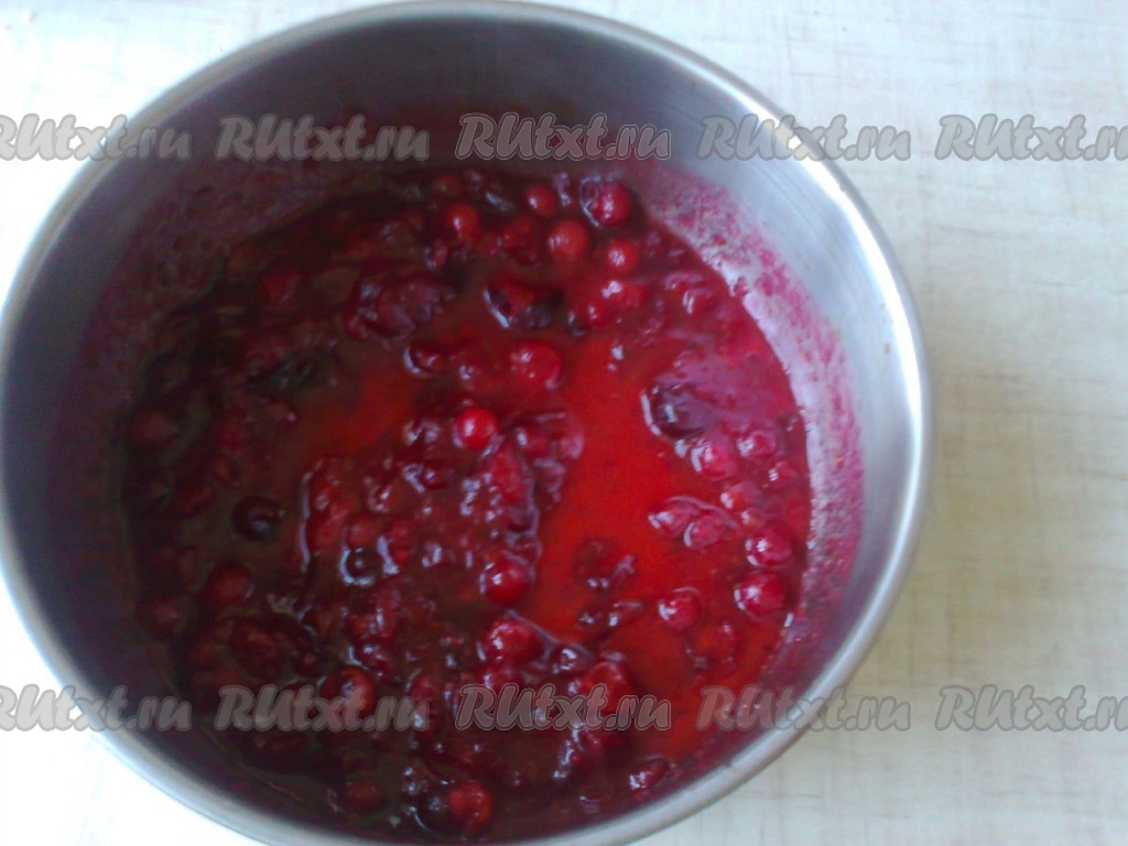 2 горсти клюквы помять и проварить с 2 столовыми ложками сахара.