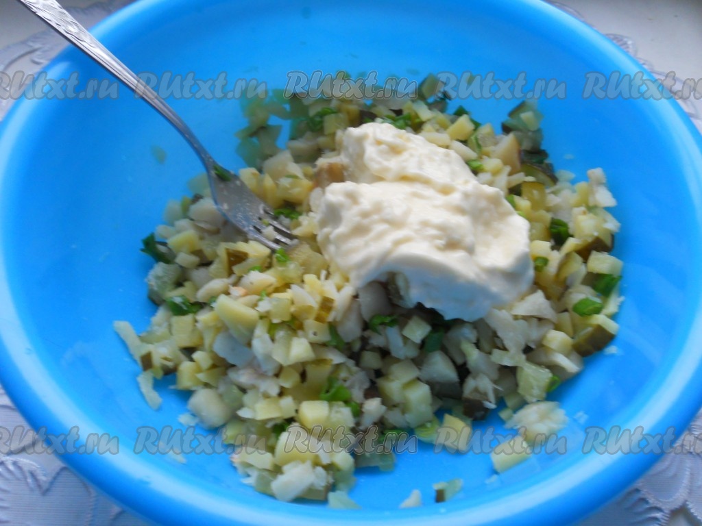 Для приготовления рыбного салата с картофелем понадобится: