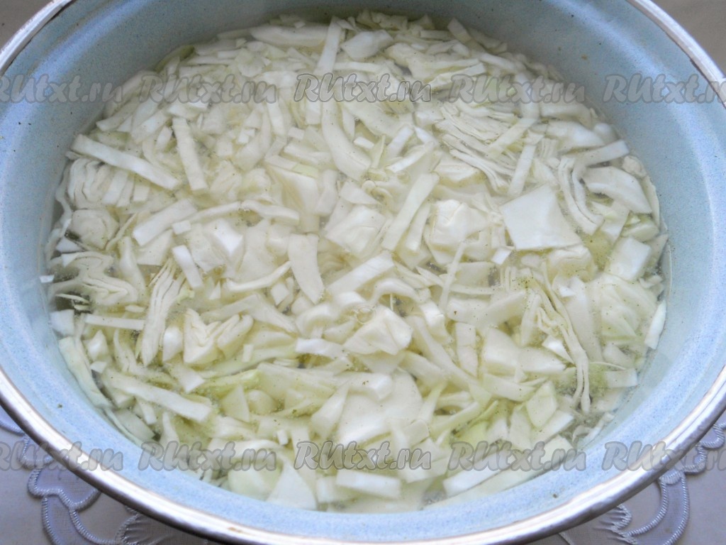 Когда картофель будет отварен до полуготовности, добавить в кастрюлю капусту, дать закипеть и варить дальше на слабом огне до готовности картошки (ещё минут 10-15).
