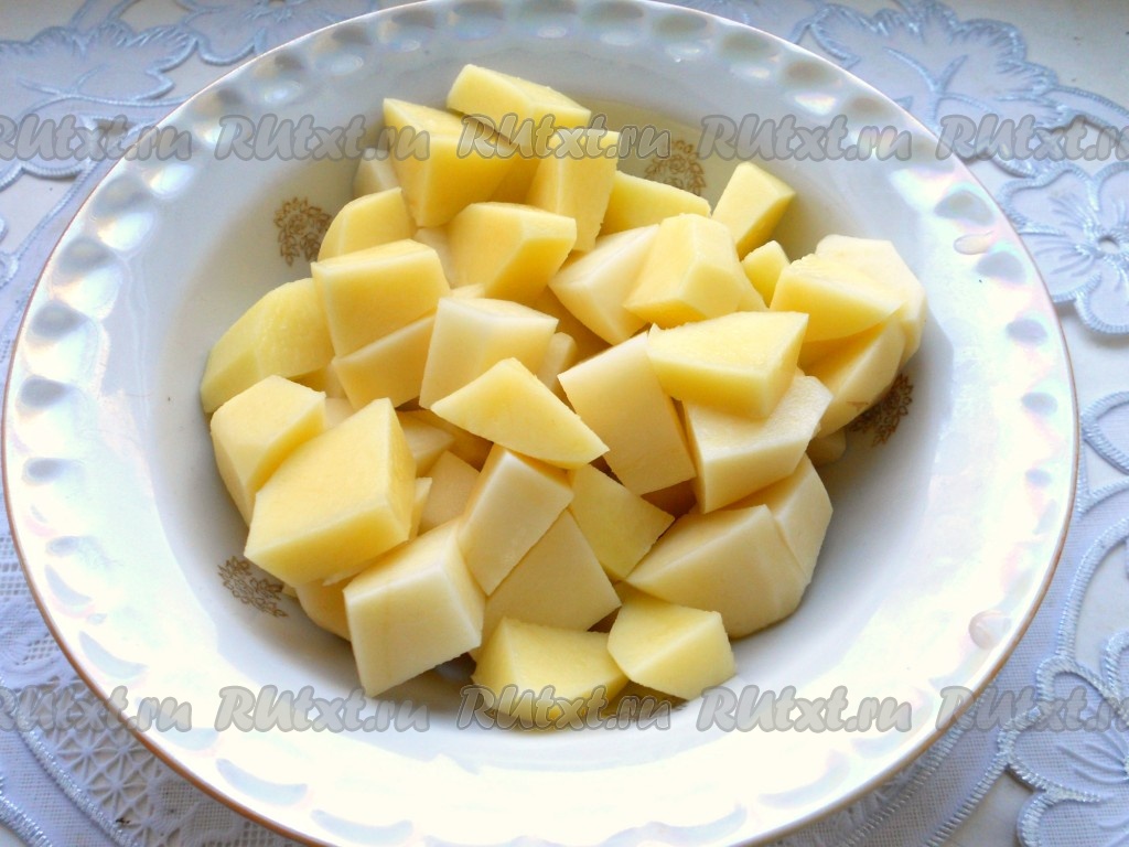 Картофель очистить и нарезать на средние кусочки.